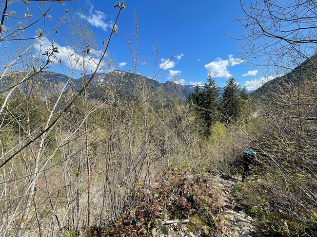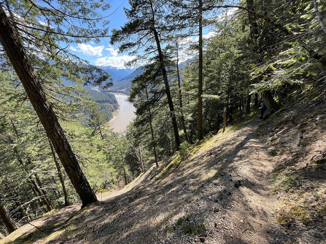 The trailhead and small dirt pulloff parking area are accessed off of Trans Canada Highway 1 just before you reach the town of Yale. It is on your left side if you're heading up from Hope. There is a wooden trail sign.